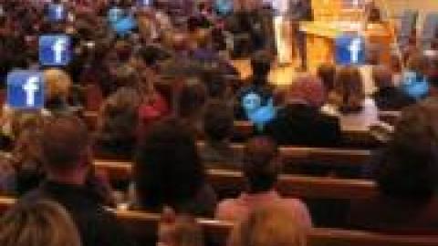 It would be interesting to hear from those who have grown up with technology. I'm part of the in between generation (30 something) and I have a much different view of things than I see presented here. I did not grow up with social media. However, I do use my smartphone for reading the Bible, check in with Foursquare when I get to church, and occasionally take a photo if there is especially interesting artwork or something visual going on during worship. I have been to conferences where people are tweeting with a specific hash tag during a main speaker and it actually helps people to pay attention - you can retweet a quote that struck you, read what others are thinking, etc. Multitasking is second nature and rather than detracting from what's going on, it can enhance one's experience of it.